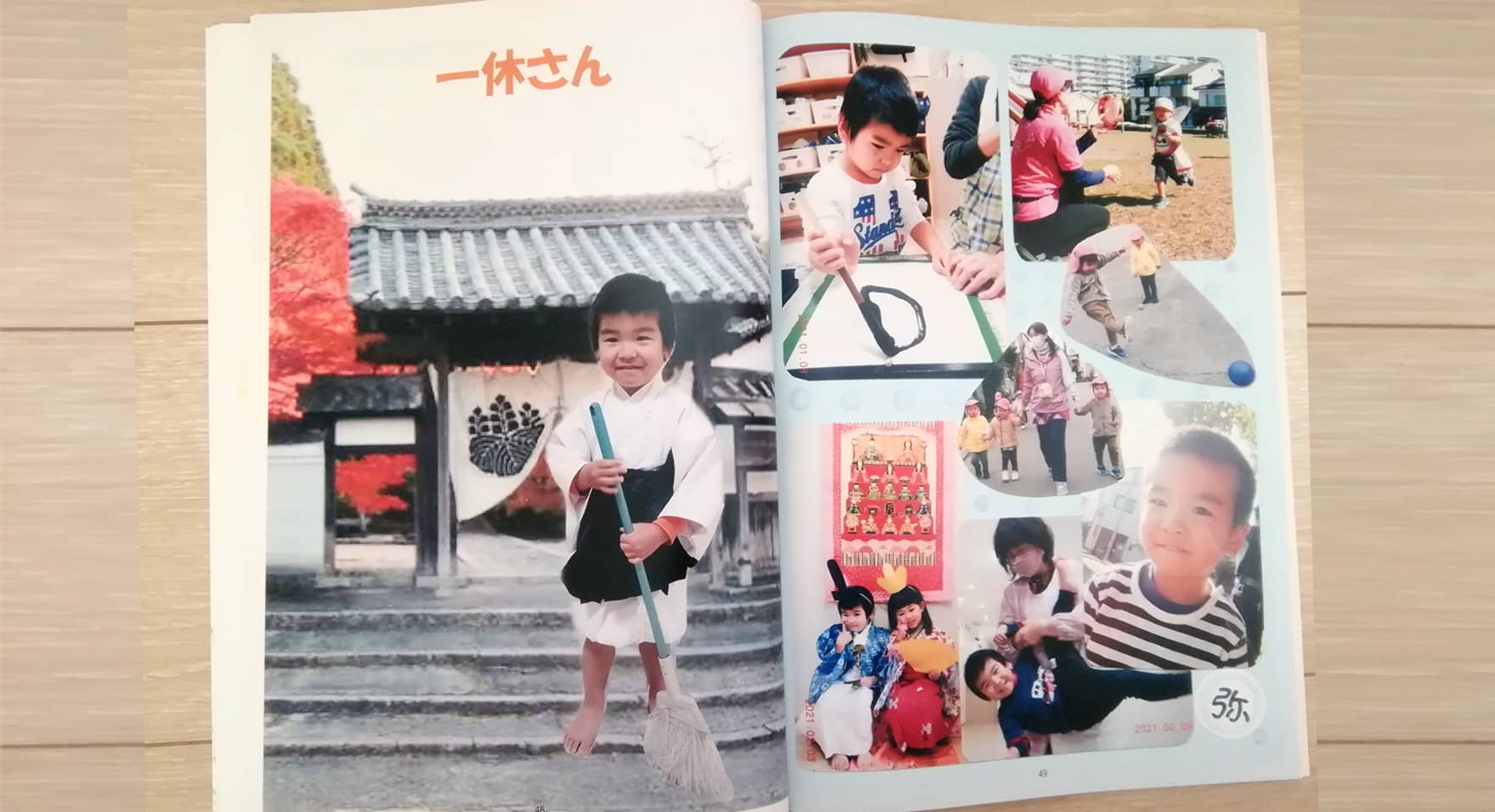 卒園時に、てんとうむしと過ごした思い出と共にプレゼントしています。30年以上ずっと続けている保育者たちの愛情がこもった『宝のアルバム』です。