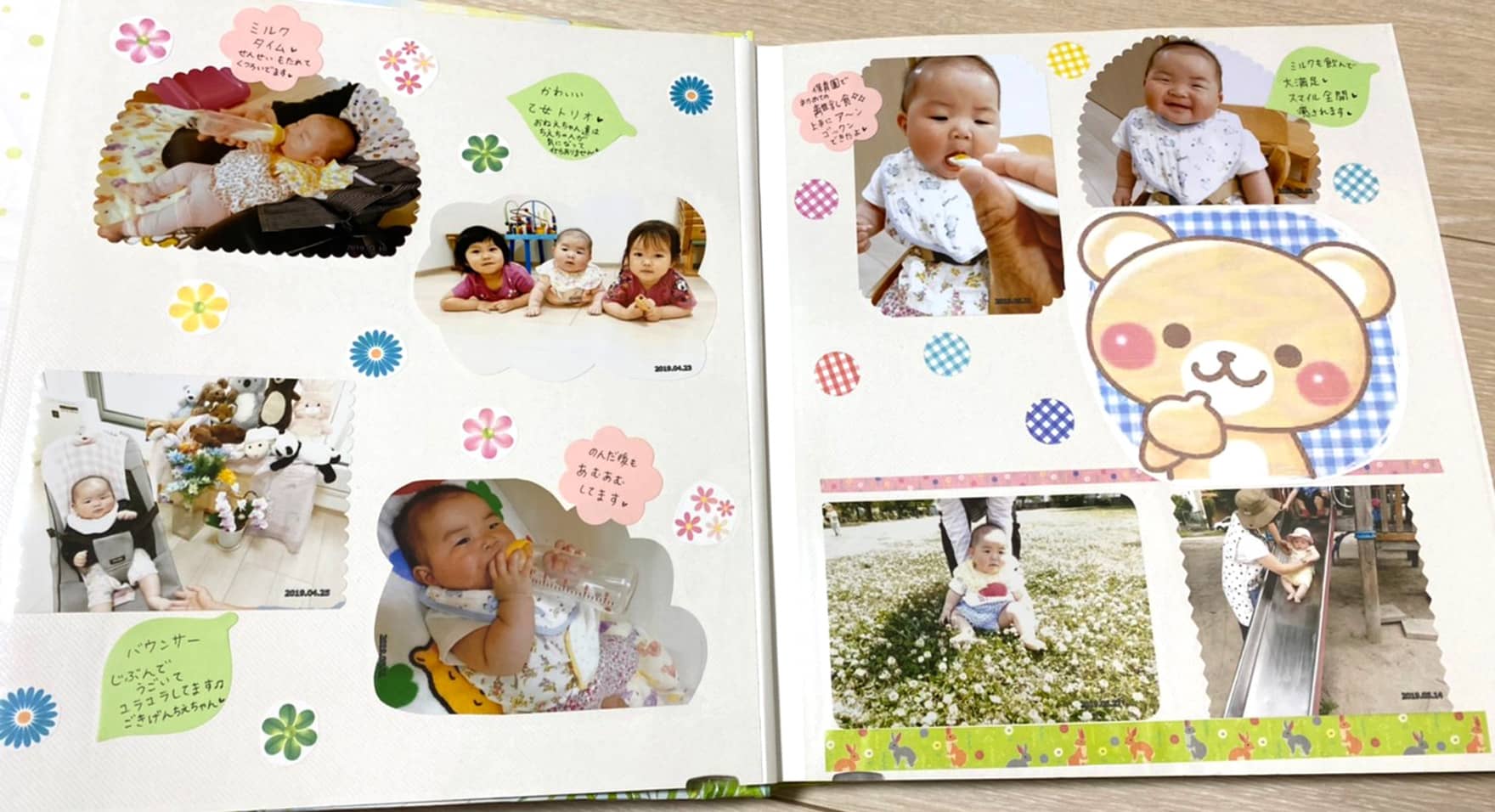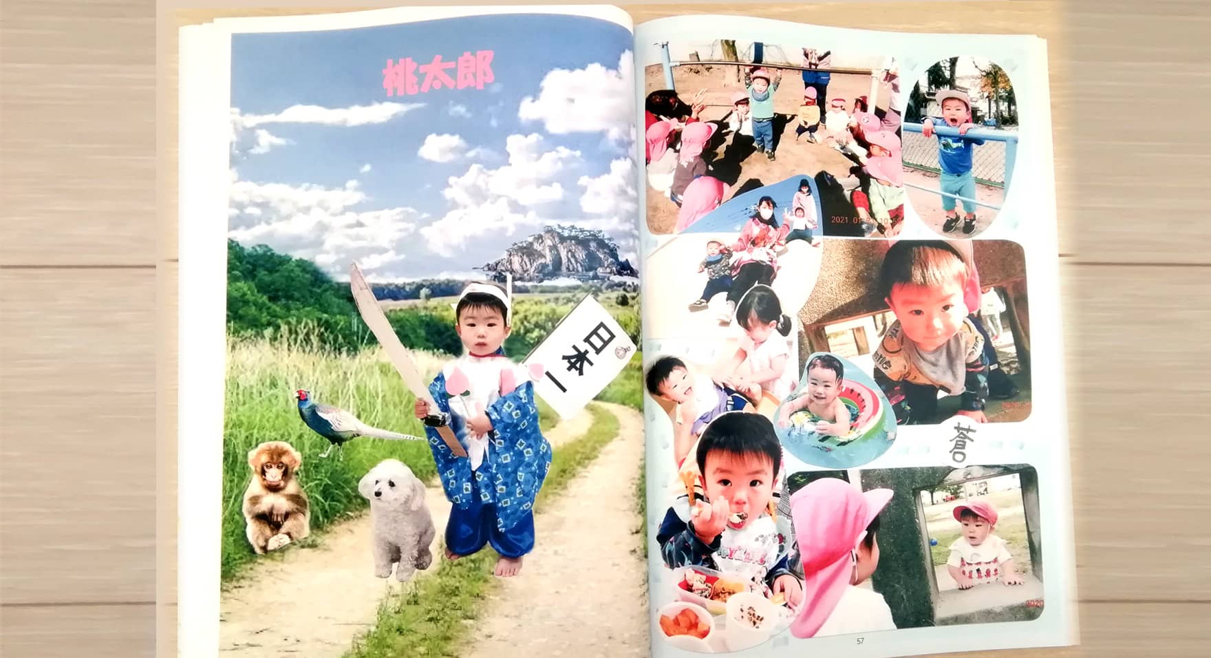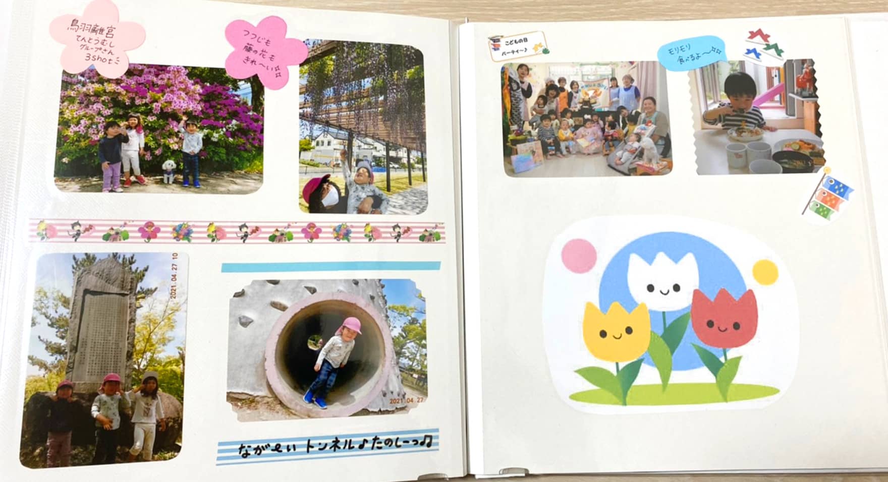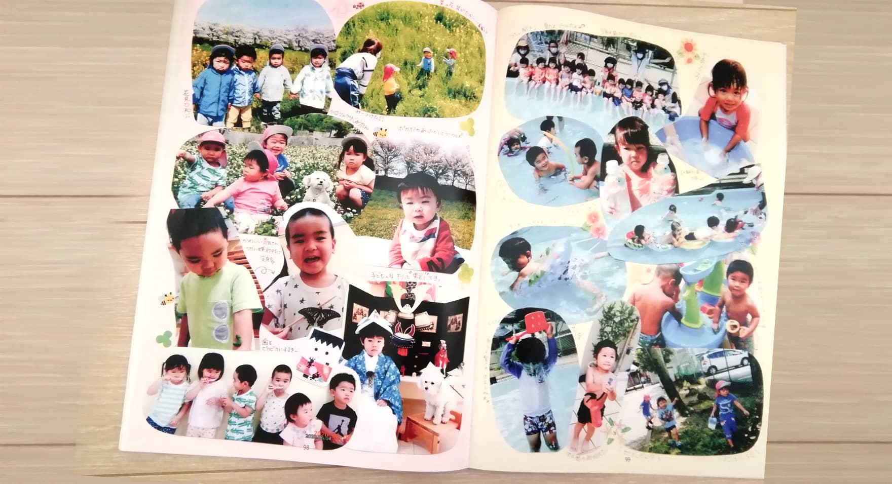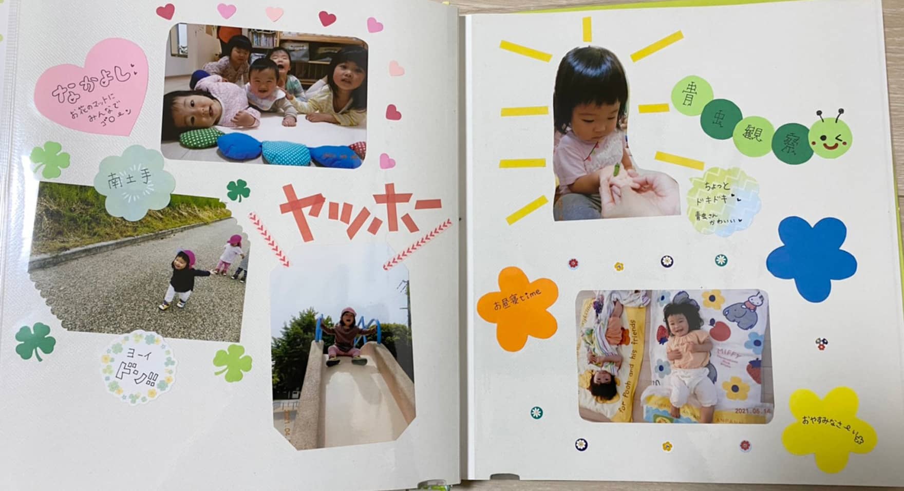 日々保育士が写真やコメントをレイアウトして製作し、卒園時にプレゼントしています。
