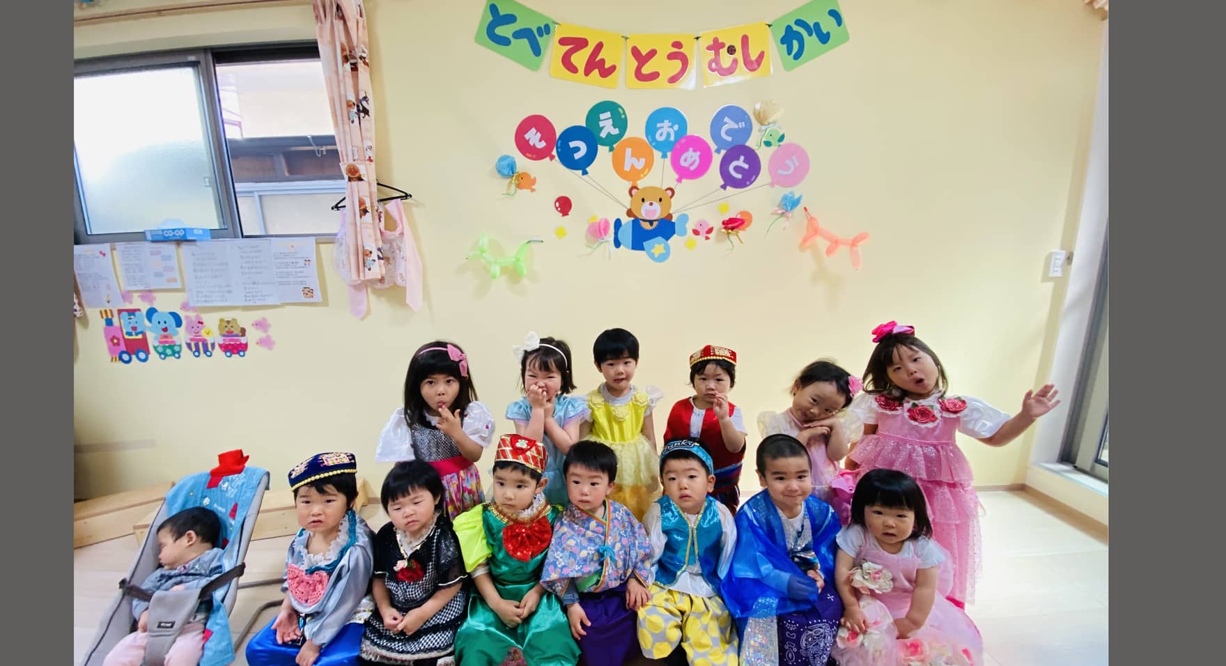 色とりどりのスタッフ手作りの衣装がいっぱい! お誕生日会、クッキング、季節の行事、卒園式(とべ!てんとうむし会)などなど。どれにしようかと迷ったり、私はこれ!と選択も楽しい♪ たくさんの衣装が充実しています。
