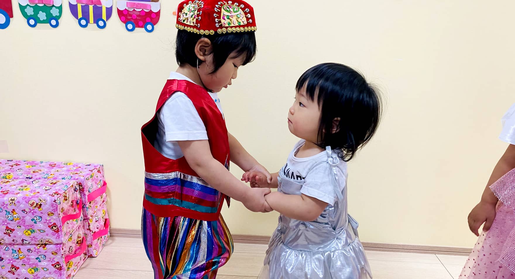 色とりどりのスタッフ手作りの衣装がいっぱい! お誕生日会、クッキング、季節の行事、卒園式(とべ!てんとうむし会)などなど。どれにしようかと迷ったり、私はこれ!と選択も楽しい♪ たくさんの衣装が充実しています。